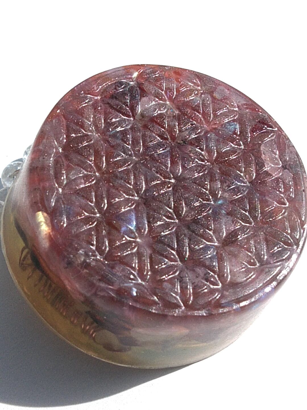フラワーオブライフの型のオルゴナイトです。