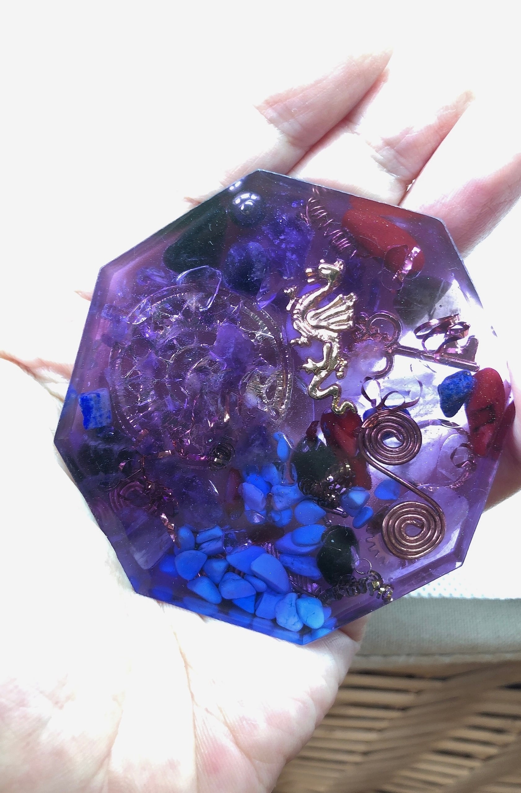 コースターとしてはもちろんですが、コンパクトなのでバックなどに入れて持ち運び用のオルゴナイトとしても使えます。