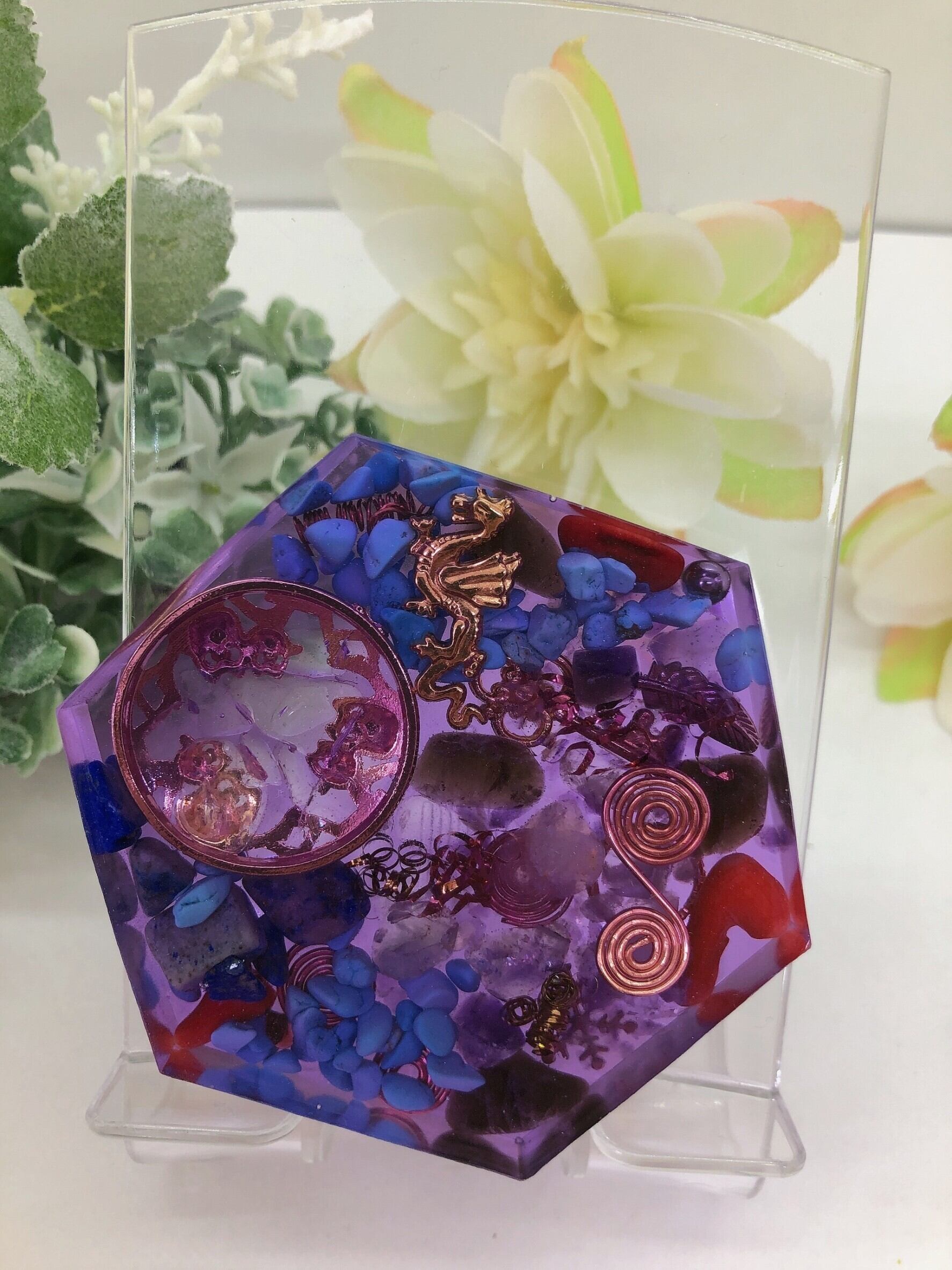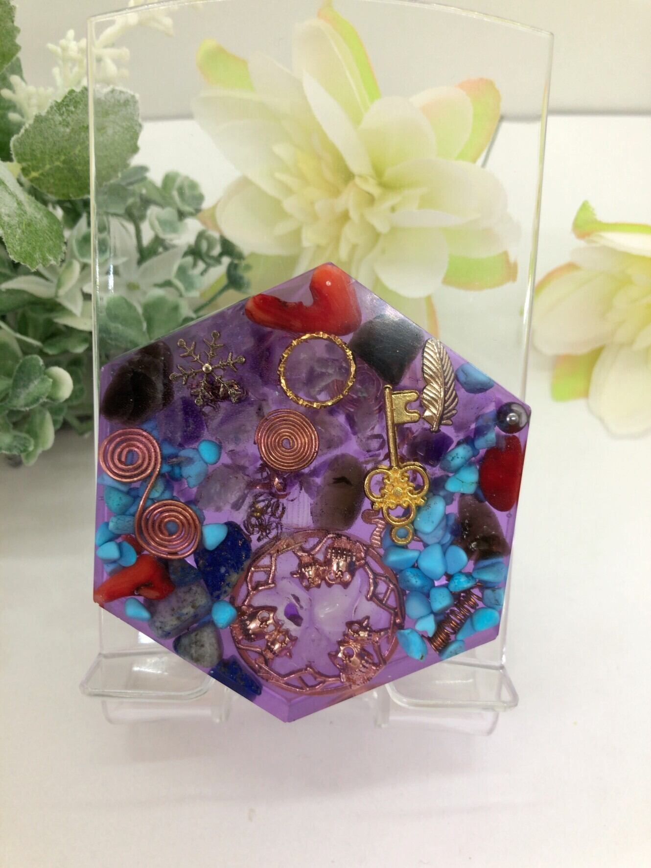 お守り 魔除 紫色 オルゴナイト コースター ②T25
