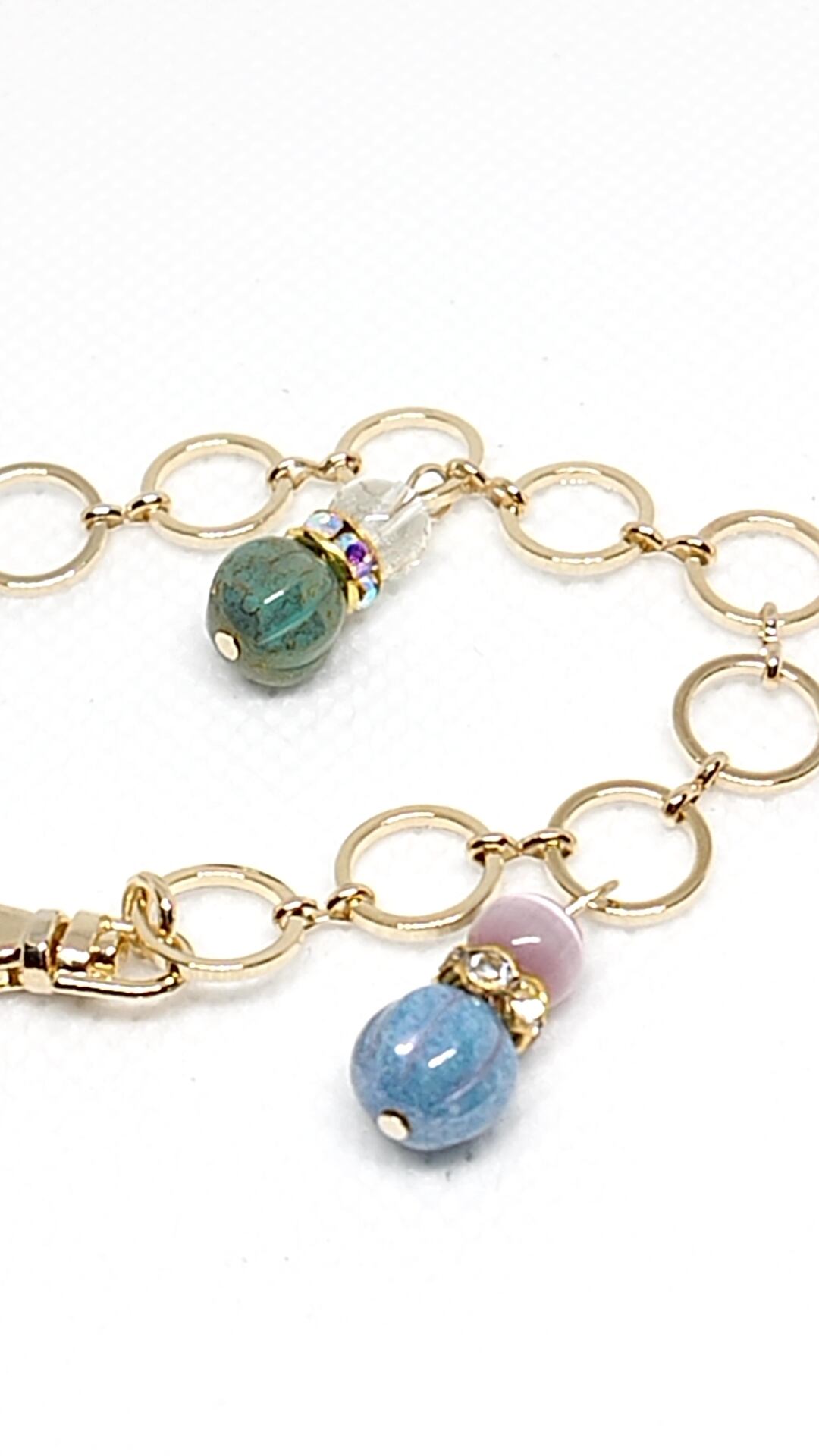 誕生石がついた、リング型チャーム付きのお守りオルゴナイトバックチャームです。