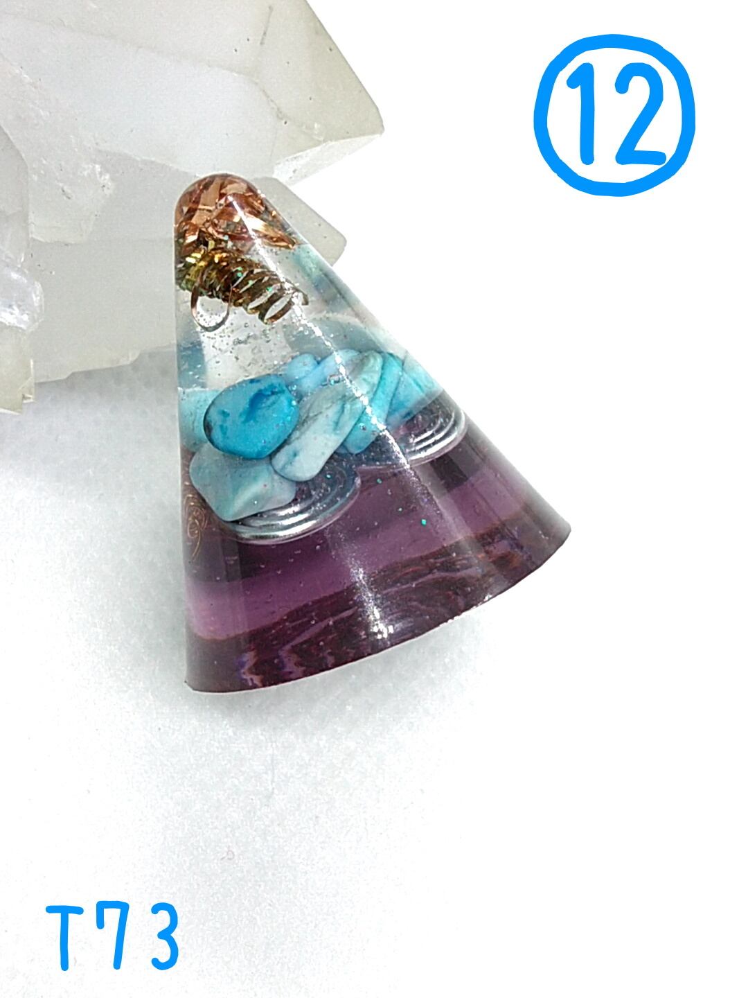誕生石を入れたお守りオルゴナイトです。