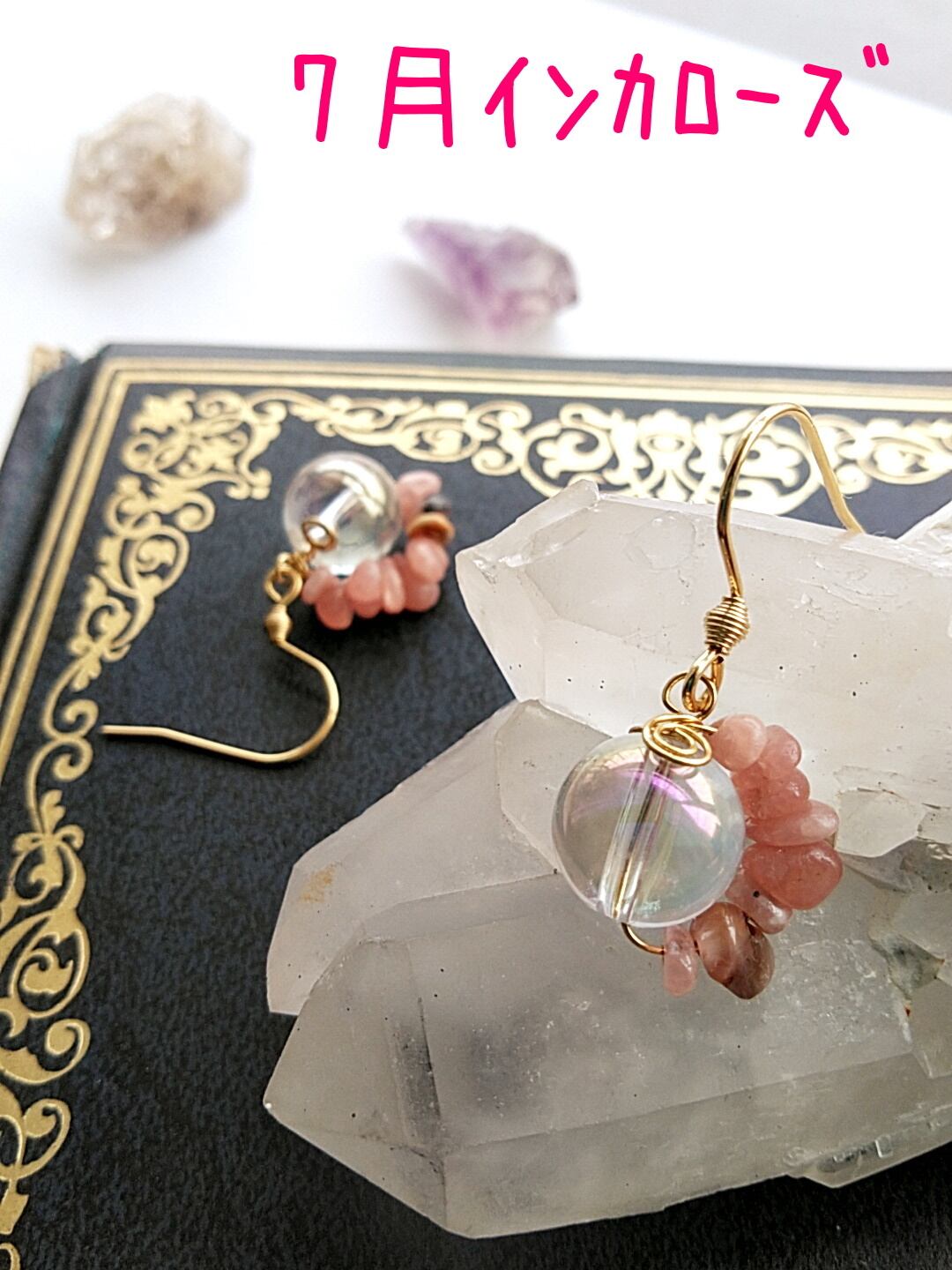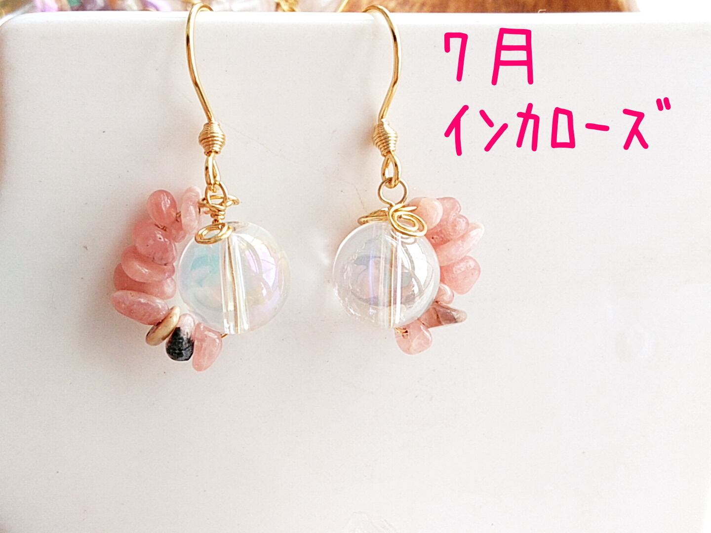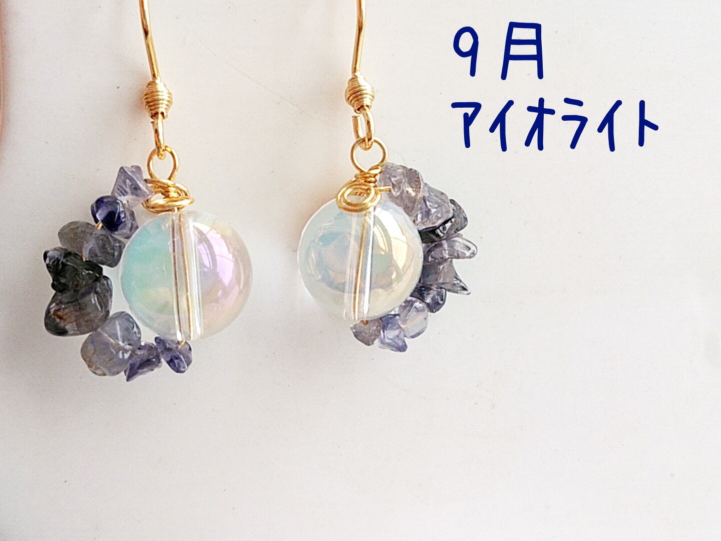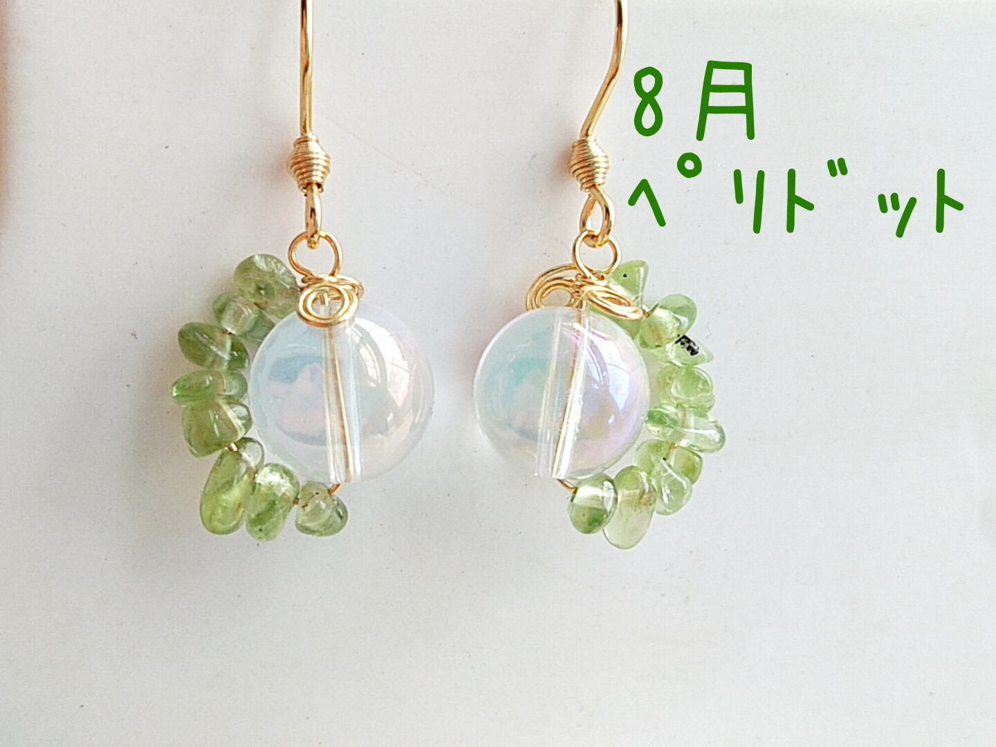 12か月の誕生石と虹色に光るシャボン玉のようなクリスタルオーラを組み合わせたピアスです。