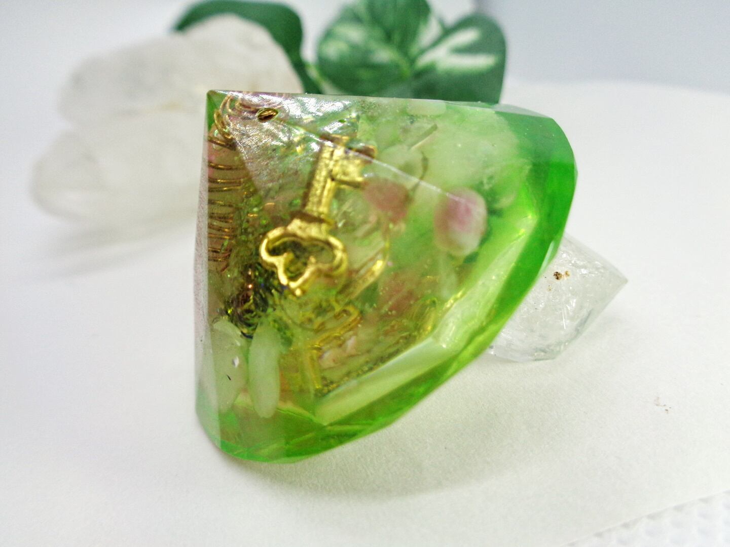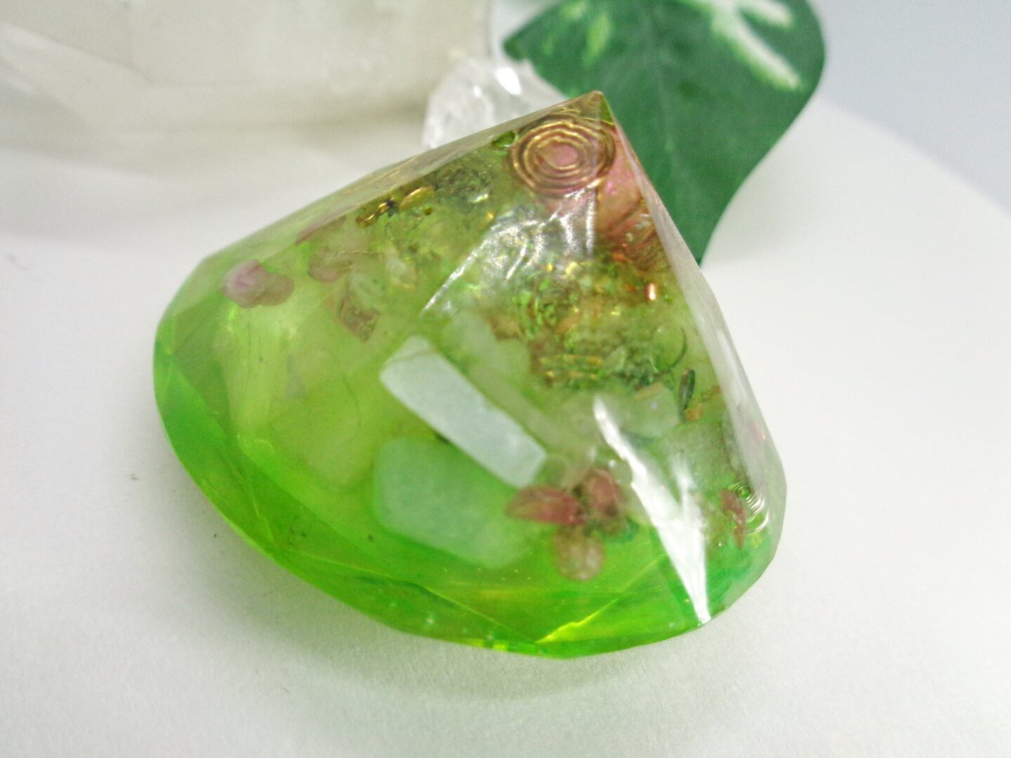 ダイヤ型オルゴナイト ご縁結び 恋愛運アップ グリーンkest16
