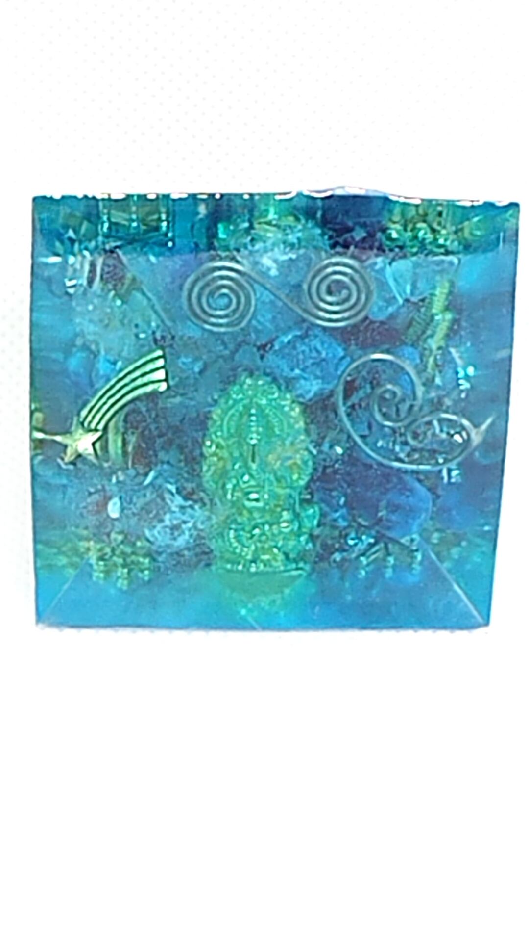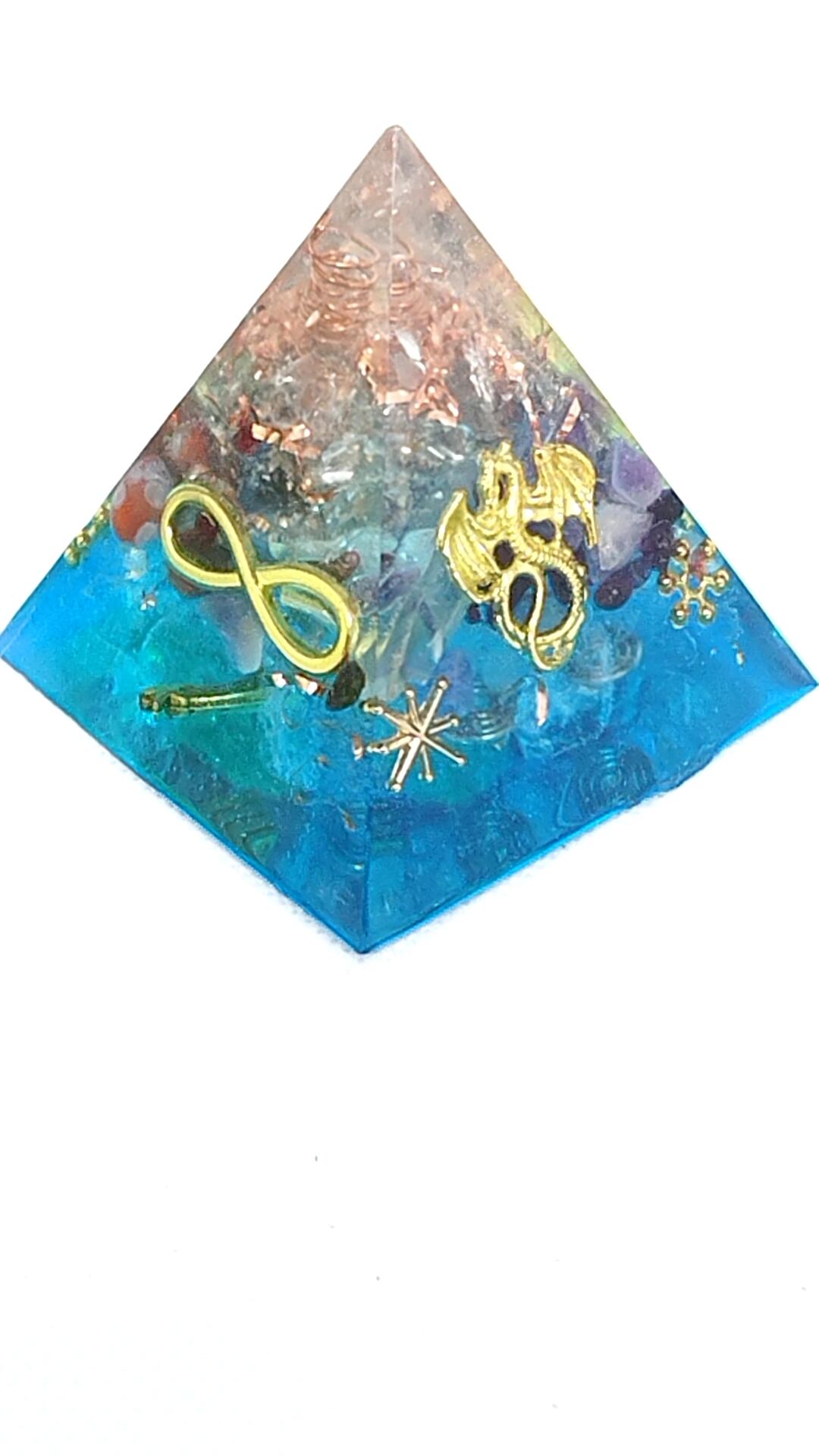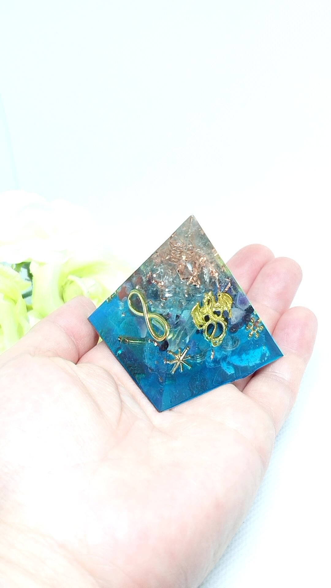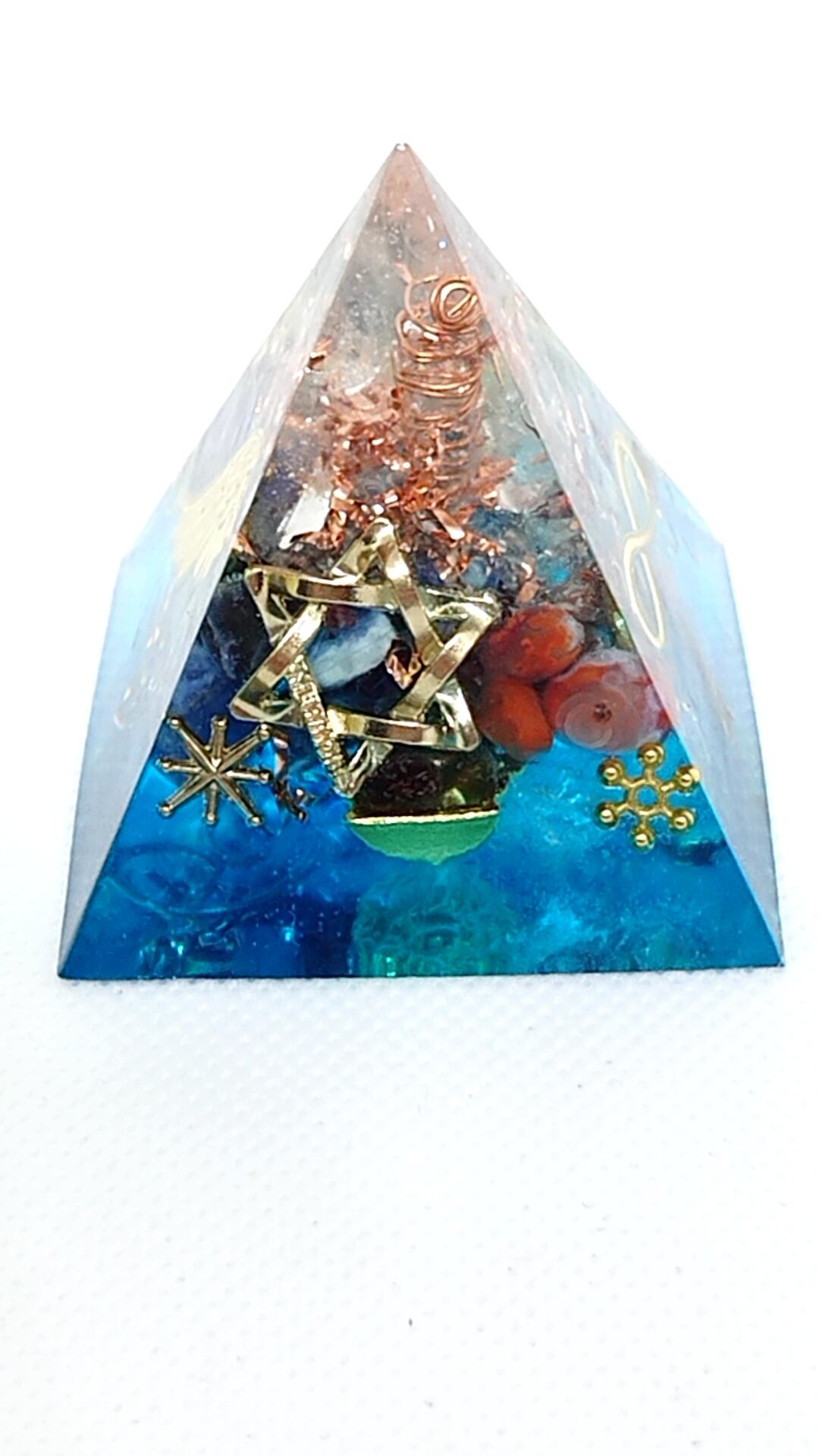 人生を導いてくれるブルーのピラミッド型オルゴナイトです。