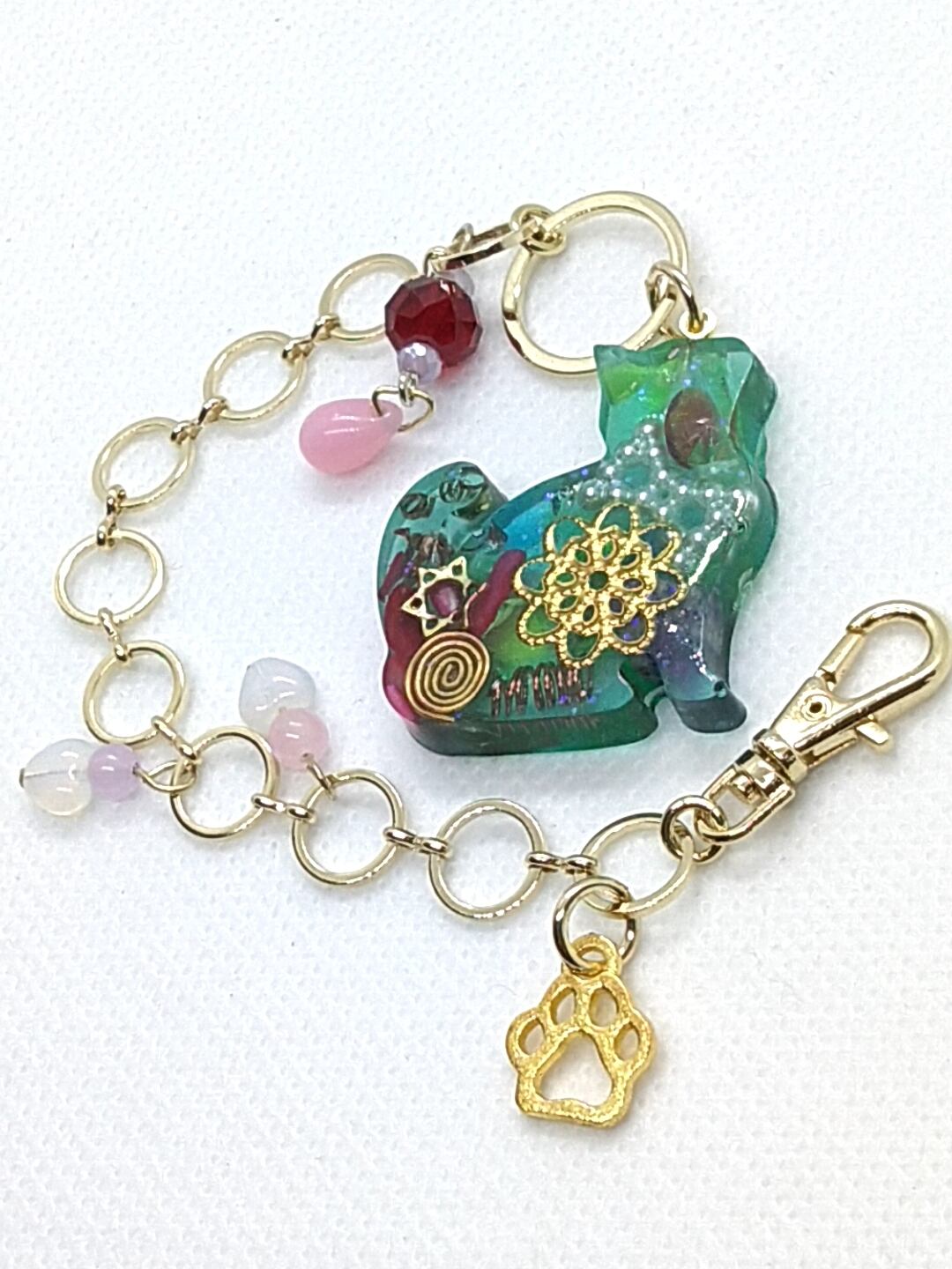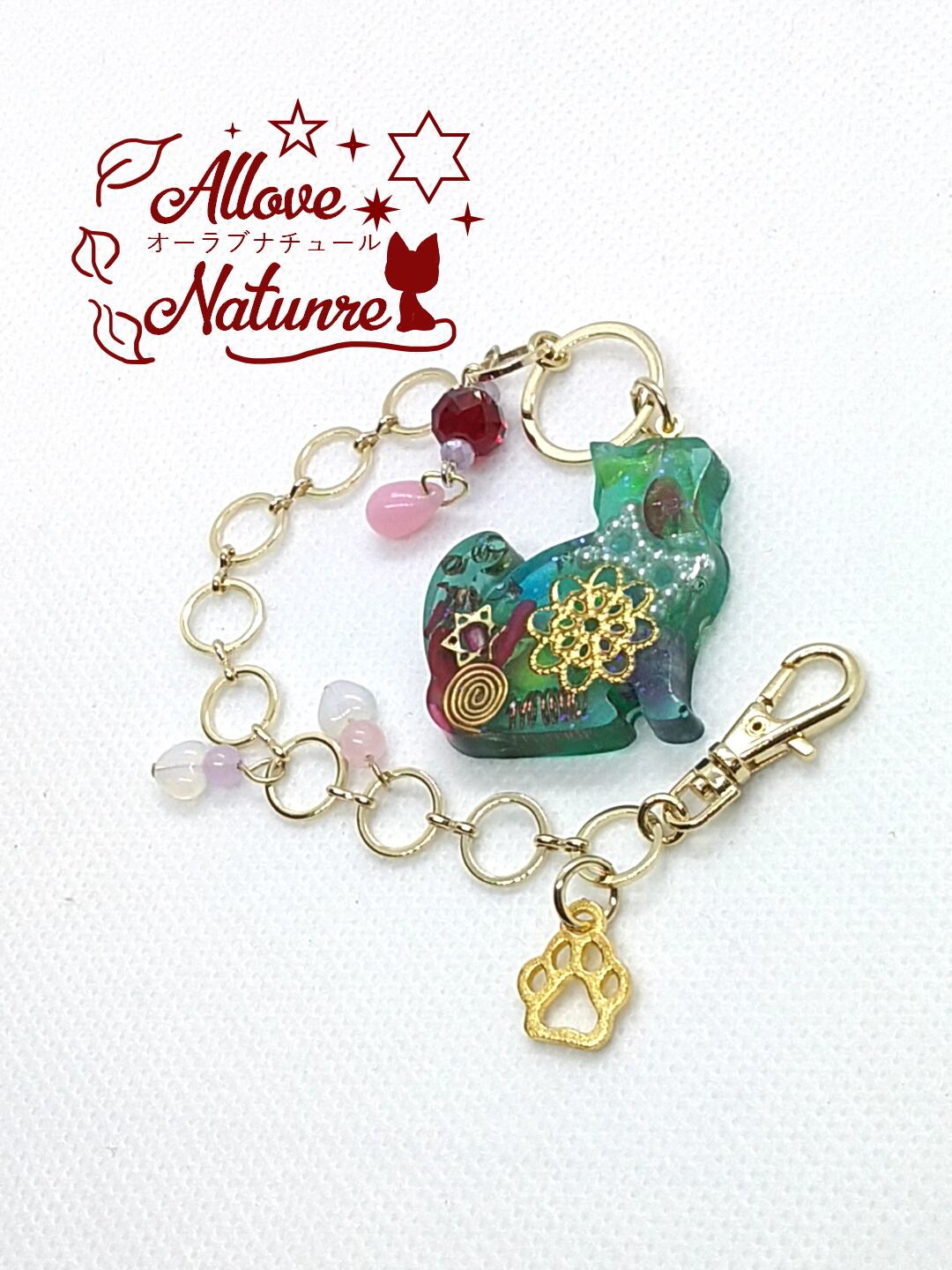 ある程度の大きさがあるにゃんこなので、オルゴナイトで大事な水晶のポイントも入ってます。