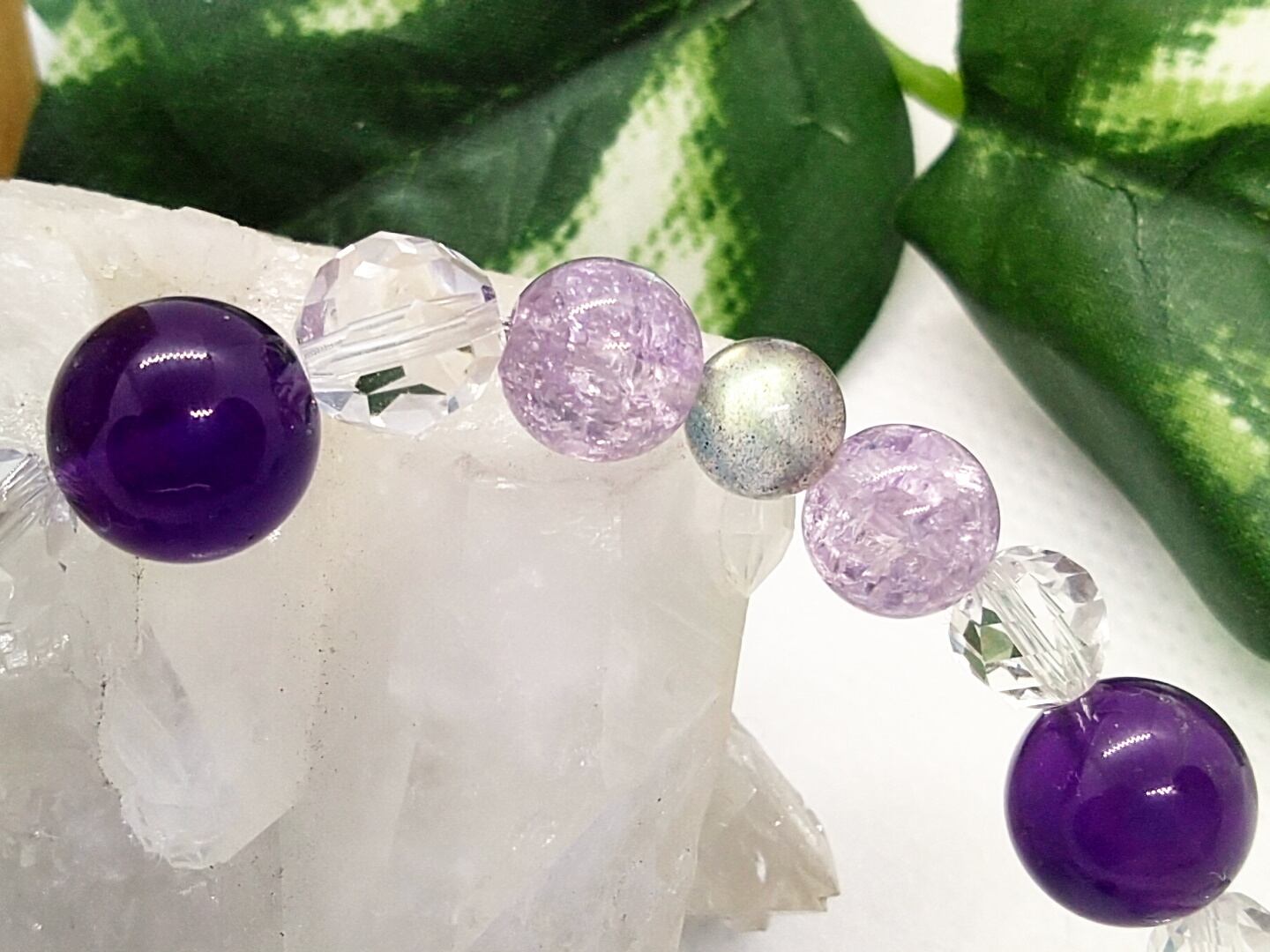 綺麗なアメジストと宝石質のラブラドライトを使用した直感力アップブレスレットです♪