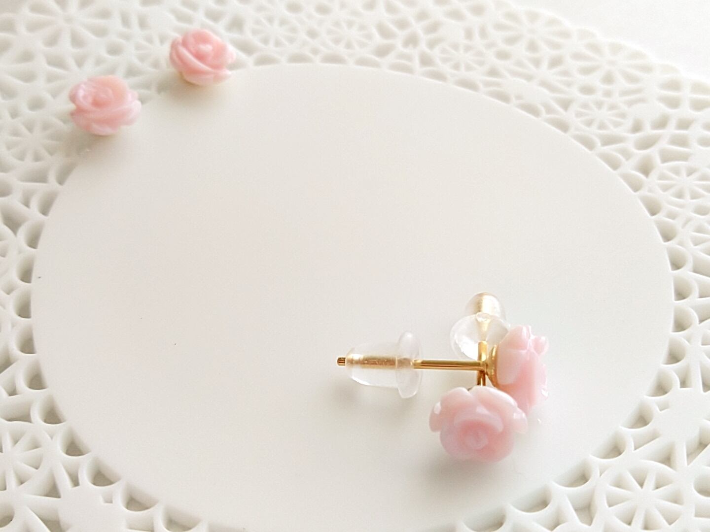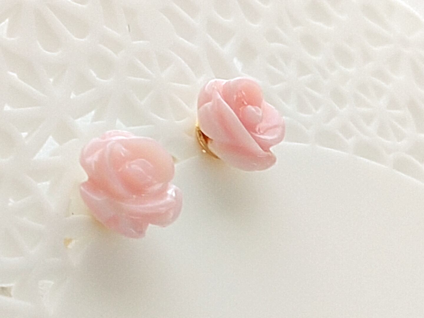 小さなピンク色の薔薇のピアスです。