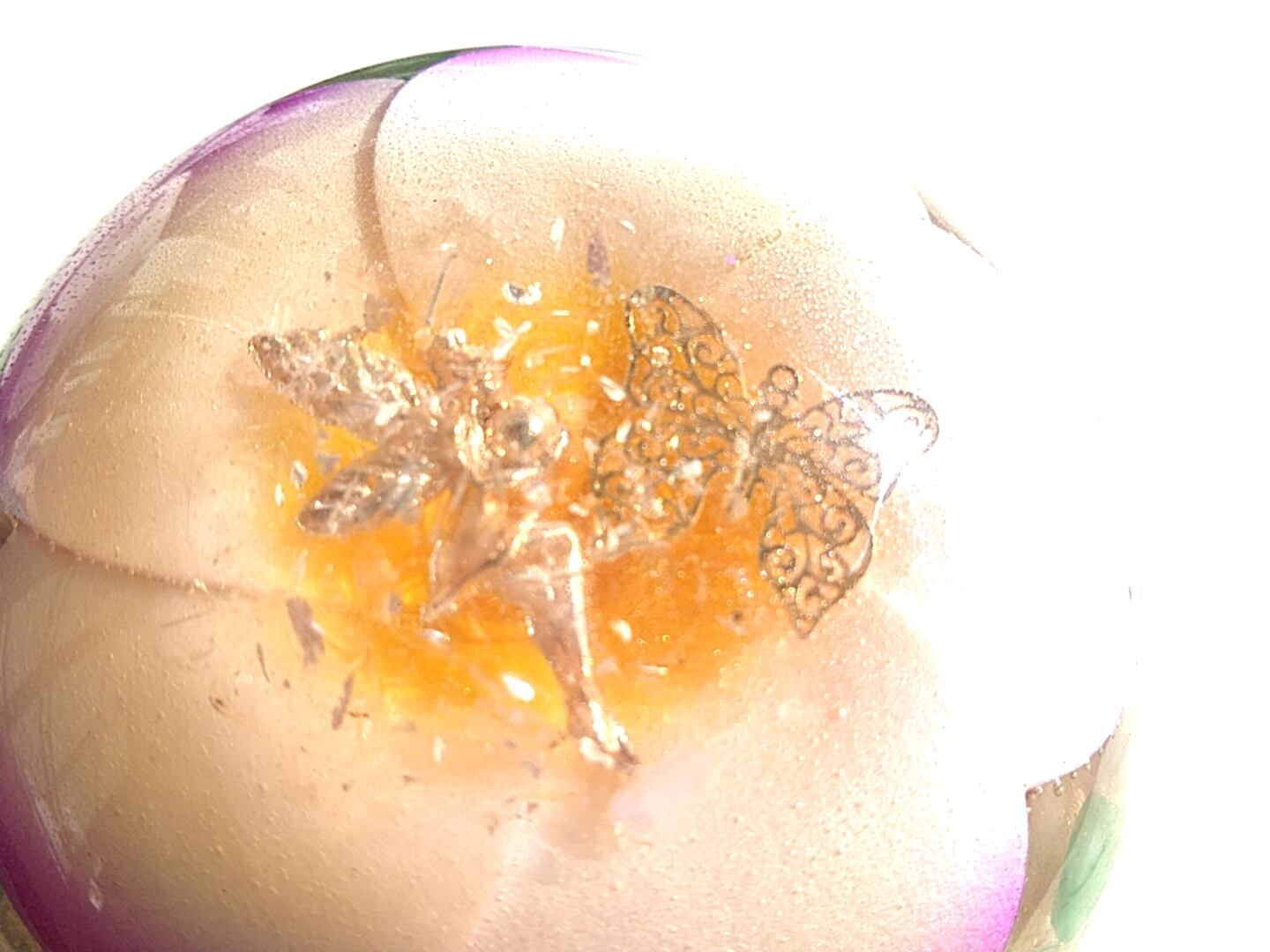プルメリアの花に妖精さんが休んでいるようなデザインの愛と癒しのオルゴナイトです。
